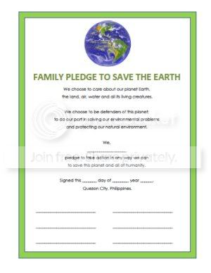 1. If you haven’t done so, sign a family pledge to save the Earth. I presented this for Earth Hour last year and I’m putting it up again here for those who have not done so yet.