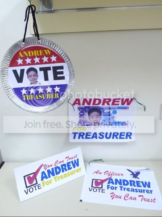 Last week, my eldest son came home saying he’s running for class Treasurer. I was surprised at this declaration because last year I asked him about it and he immediately said no,stating that it’s hard to be an officer. Well, I guess he’s up to the challenge now.