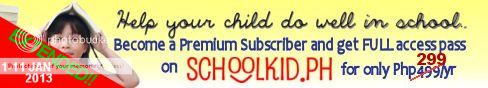 EXTENDED TO JANUARY 11! The Year-end promo on a NEW Schoolkid.Ph Premium membership starts on 24 December and will end at 11:59pm on 11 January 2013. During this time, we’re knocking off Php200 from the regular rate of the Schoolkid.Ph Annual Premium Subscription. Become a Premium member now!