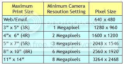 Below is a quick reference chart to give you an idea on what camera resolution would be ideal on the output size you want.